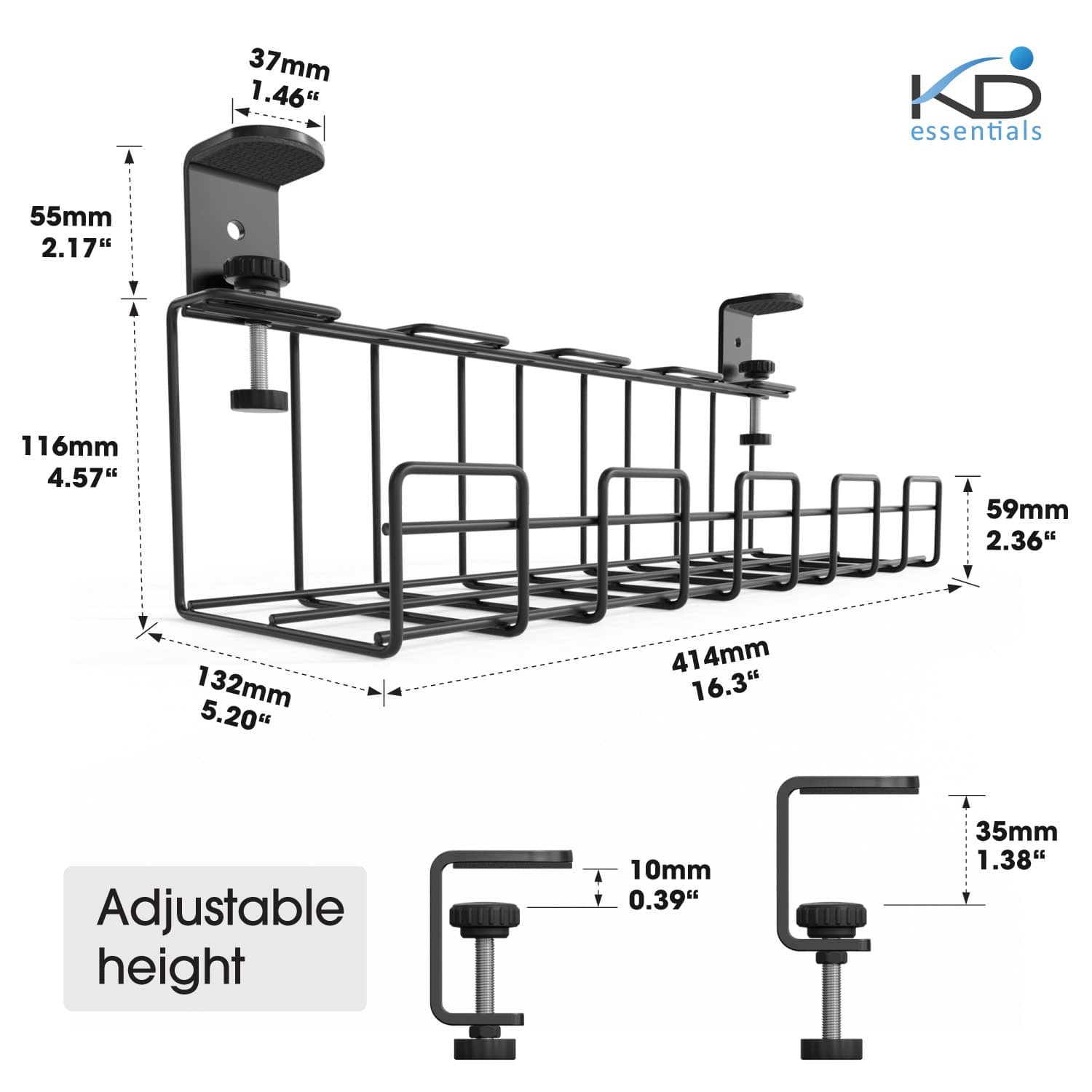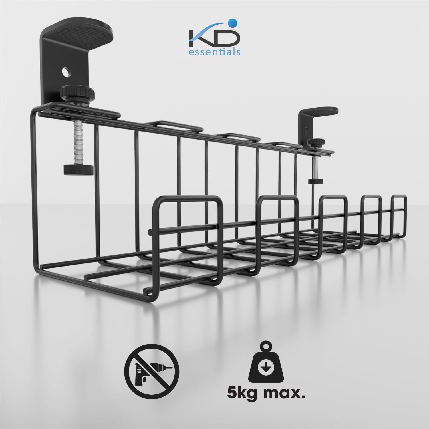 KD Essentials – Kabelkorb aus Metall, 1er/2er-Pack – Kabelhalterung & Kabelkanal & Kabelwanne, klemmbar
