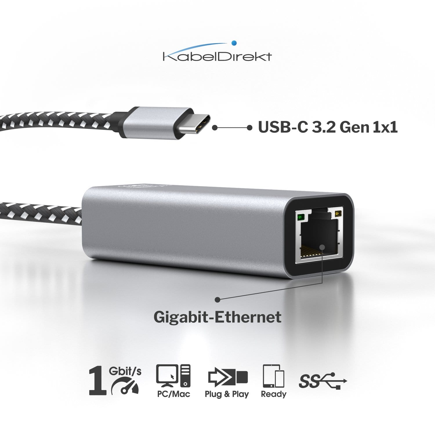 - Der Netzwerkadapter erweitert fast jedes Notebook oder Tablet sowie viele Smartphones mit USB-C-Anschluss um eine schnelle, stabile Ethernet-Netzwerkverbindung – für bequemen Datenaustausch im LAN oder schnellen Internetzugang auch ohne WLAN
