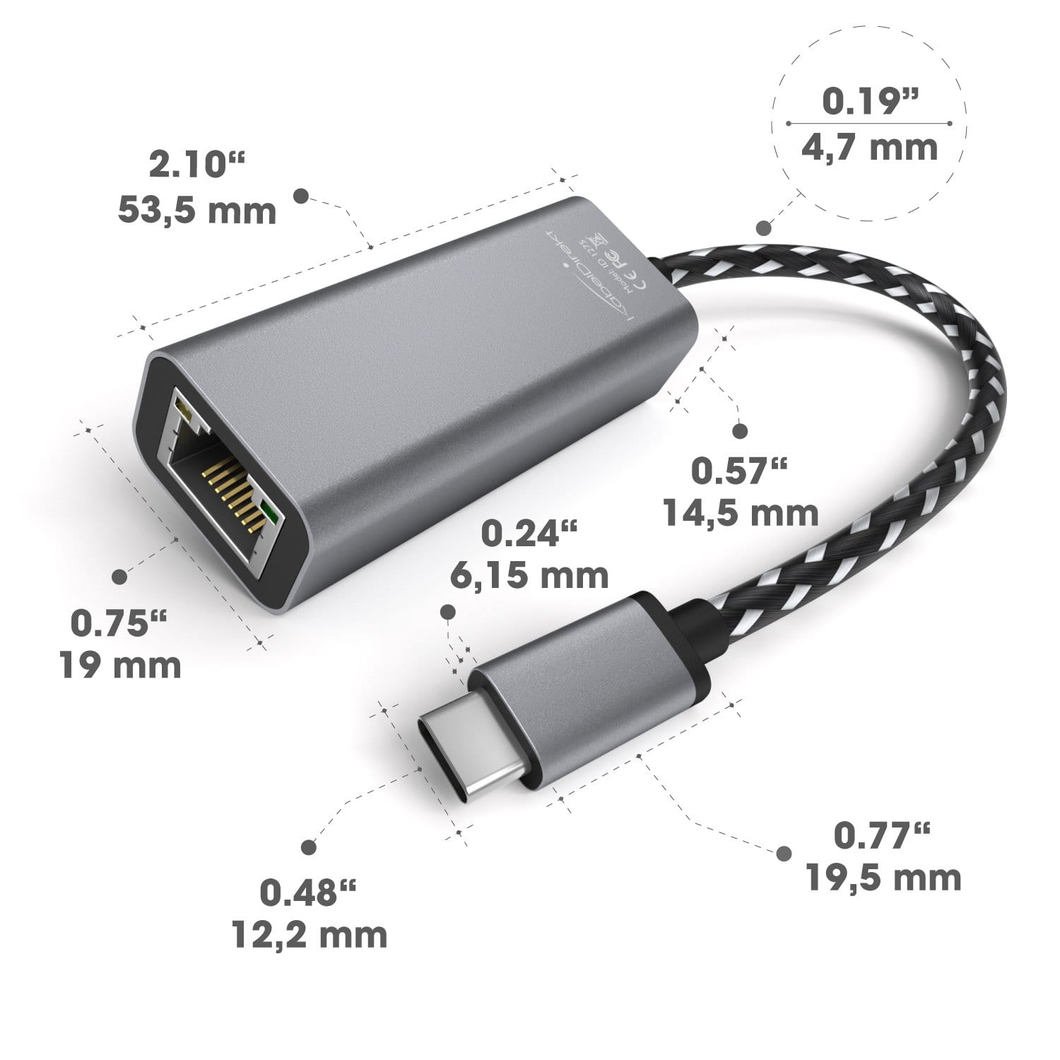 USB-C Ethernet Adapter – Zum Anschließen von Netzwerkkabeln an Geräte mit USB-C Anschluss, 1 Gbit/s