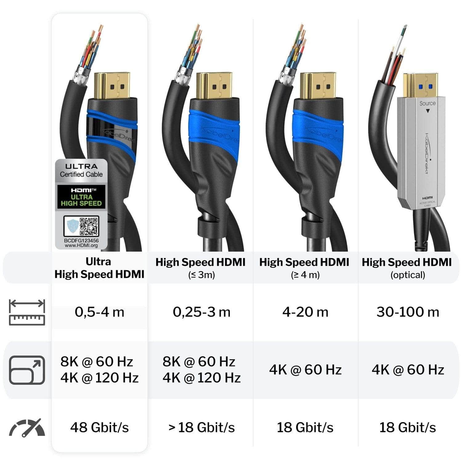 - Officially licensed: The certified Ultra High Speed HDMI cable meets the stringent quality standards of the 2.1 Specification. Only certified cables (which can be verified using an app) guarantee support for all HDMI 2.1 functions