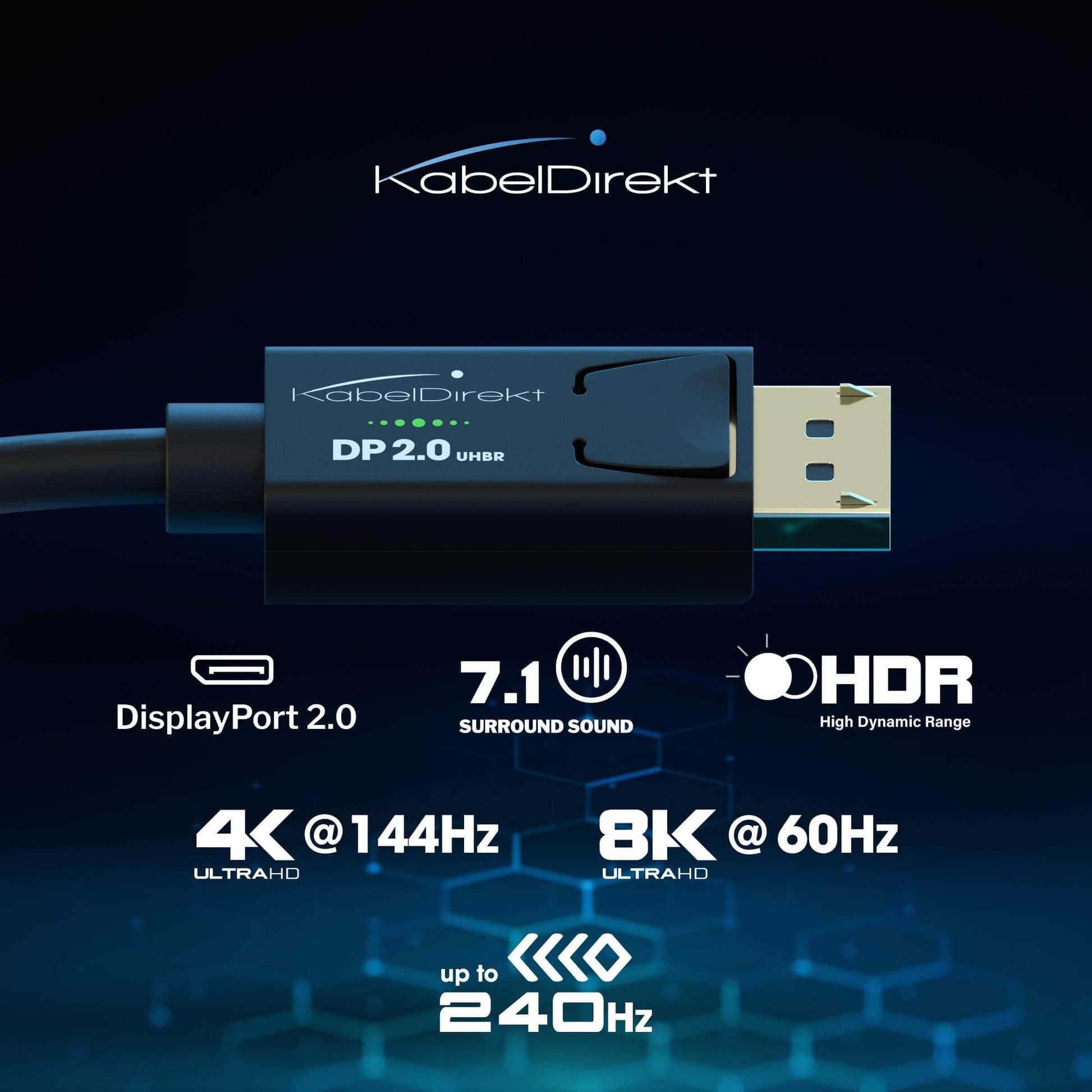 - Experience maximum performance for tomorrow’s games: This DisplayPort 2.0 UHBR10 cable supports UHD resolutions of 4K and even 8K