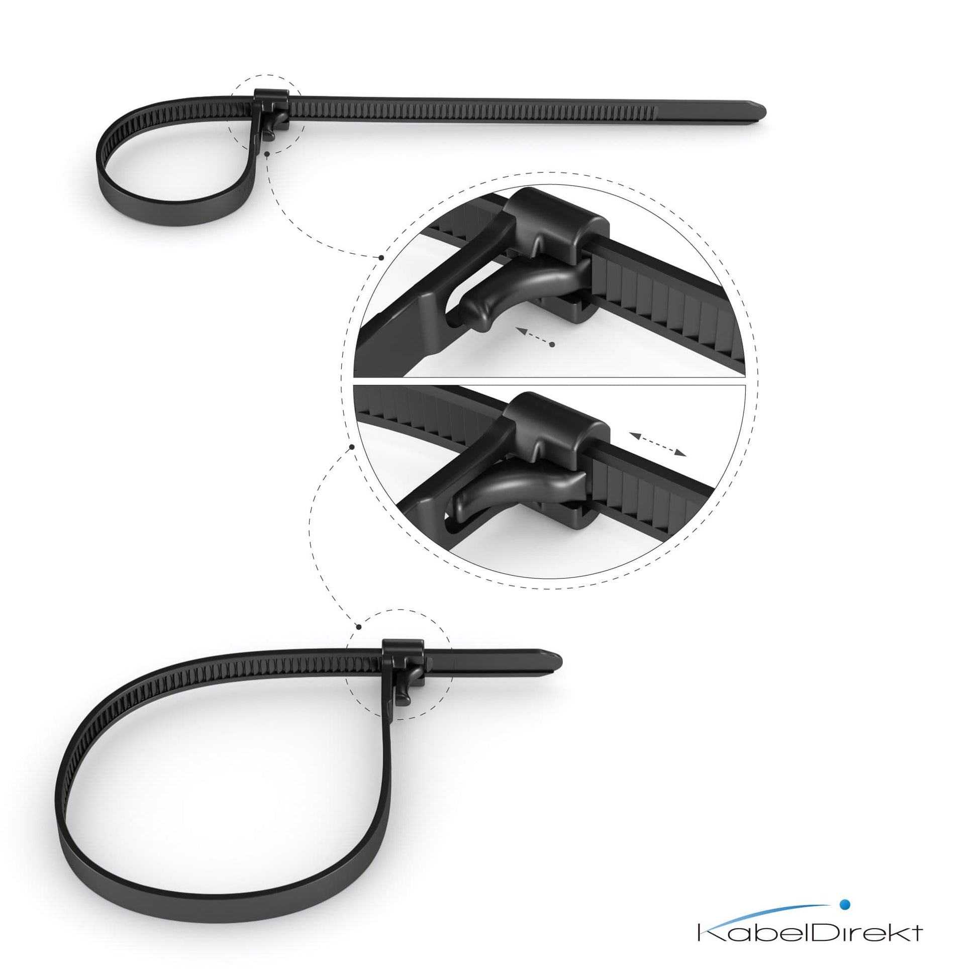 - Echt genial: Ausgestattet mit einem besonderen Schließmechanismus lassen sich die Kabelbinder von KabelDirekt wieder lösen und sind dadurch wiederverwendbar