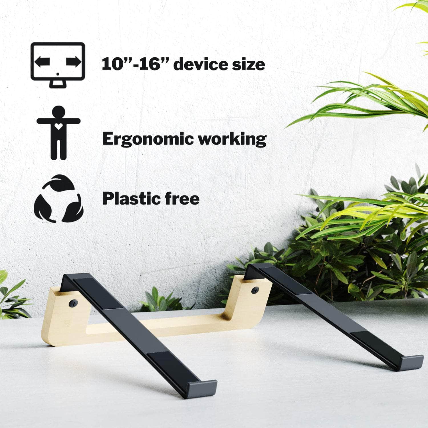 - Hochwertige Materialien: Der Laptop-Stand ist frei von Plastik – er besteht vollständig aus robustem Metall und elegantem, pflegeleichtem Bambus.