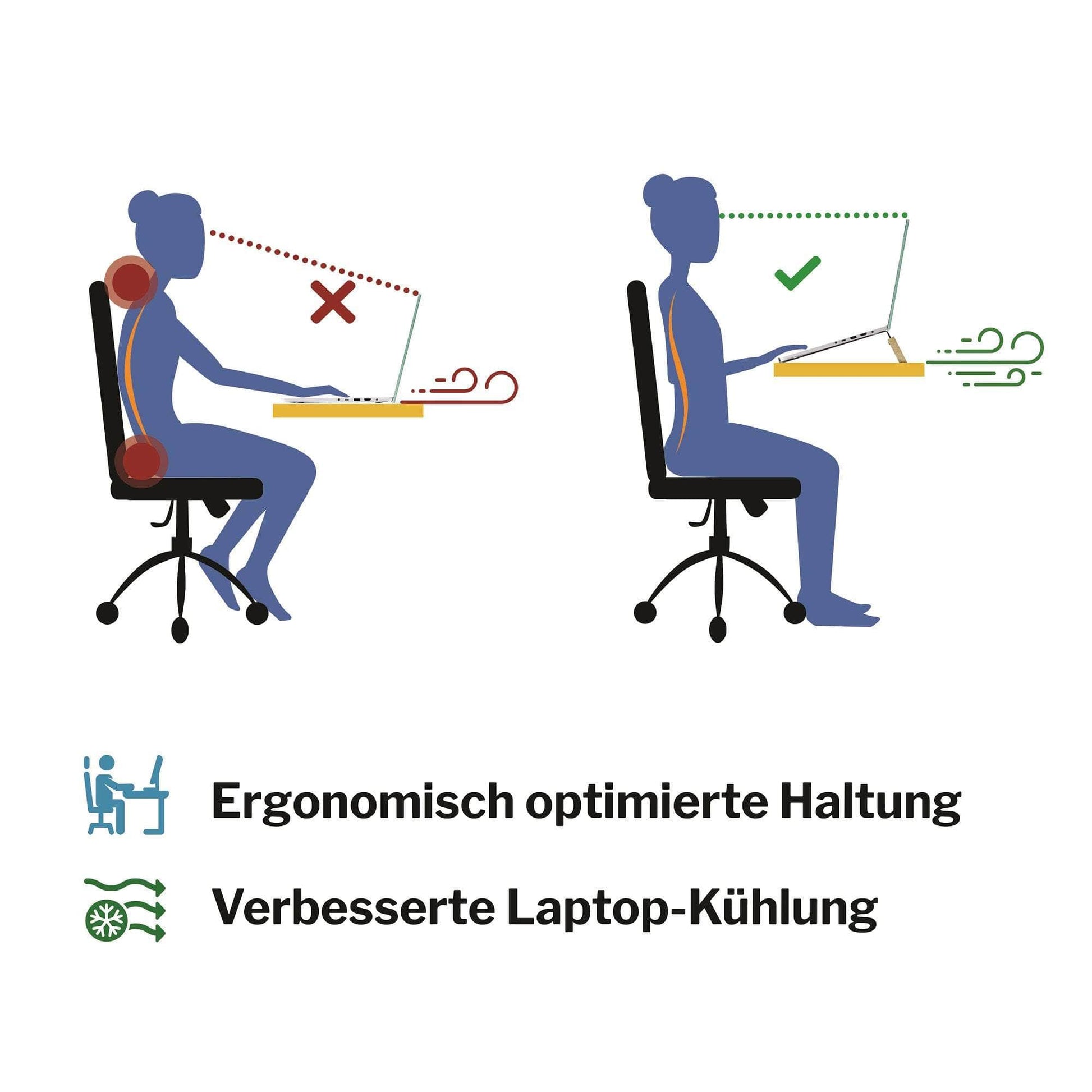 - Verbesserte Ergonomie: Der Laptop-Riser hebt den Notebook-Bildschirm auf eine angenehme Arbeitshöhe